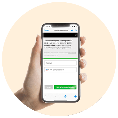 После оставления заявки, вы получите чек-лист: «На что нужно обратить внимание при списании долгов, чтобы процедура прошла без последствий»